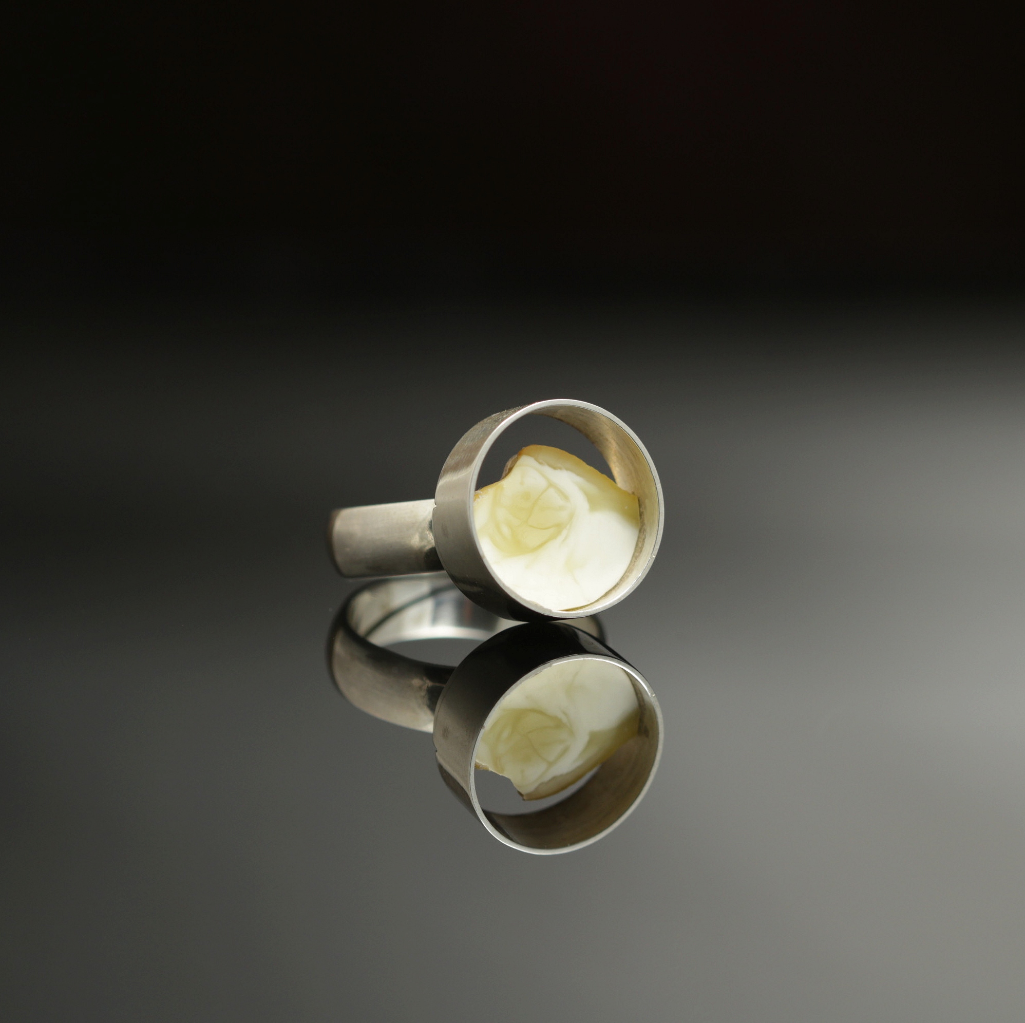 Juodo ir balto gintaro žiedas "Žemė ir mėnulis"