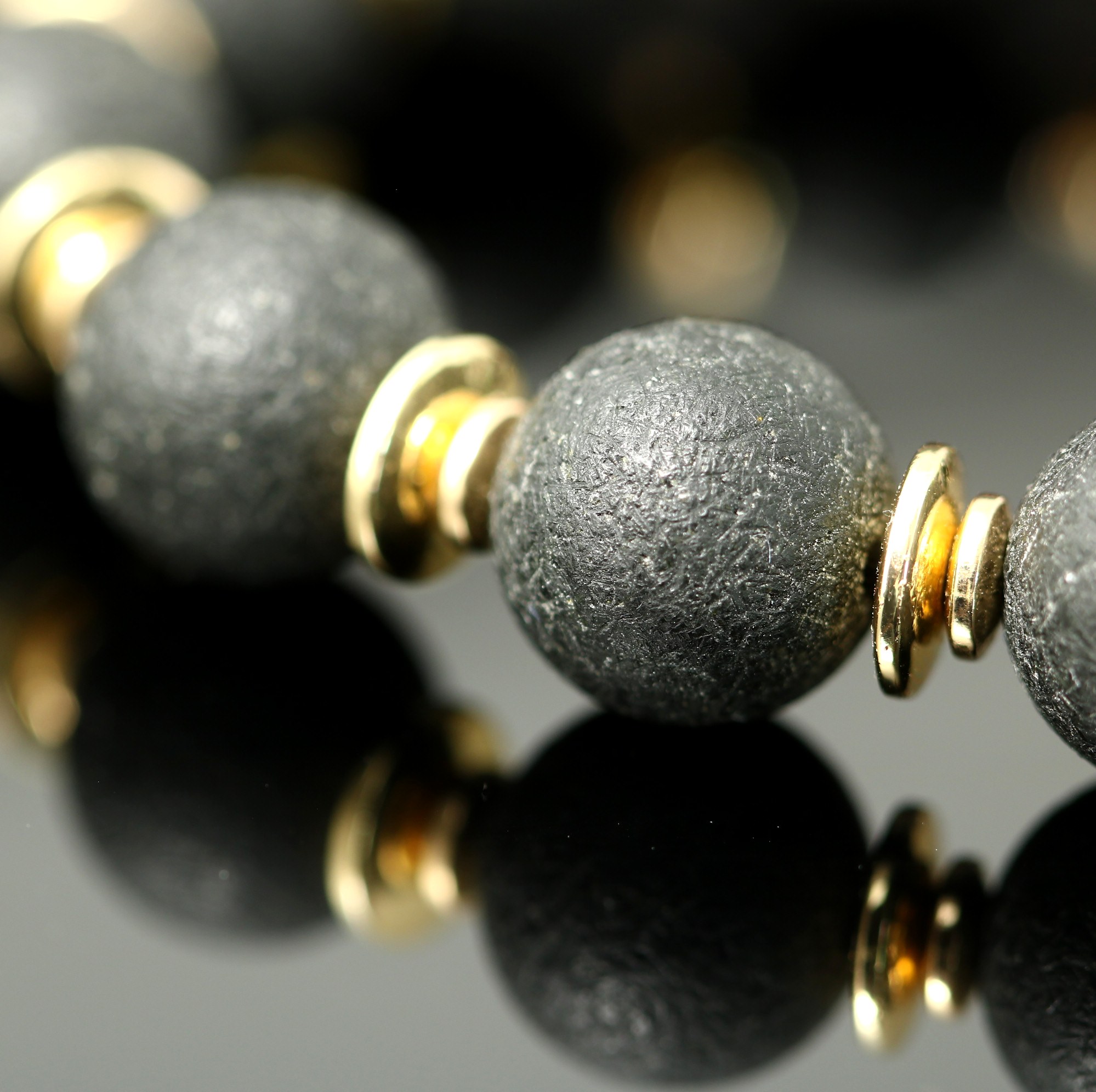 Black amber bracelet with gold colored hematite