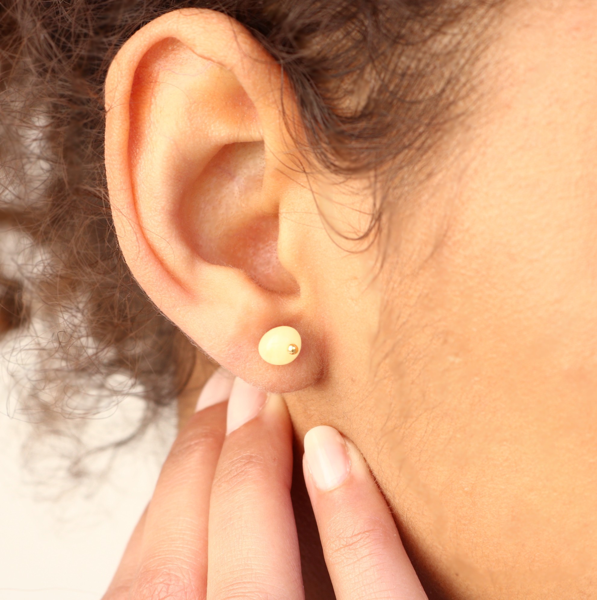Sudėtis: natūralus baltasis gintaras, sidabras 925. Svoris 0,9g.